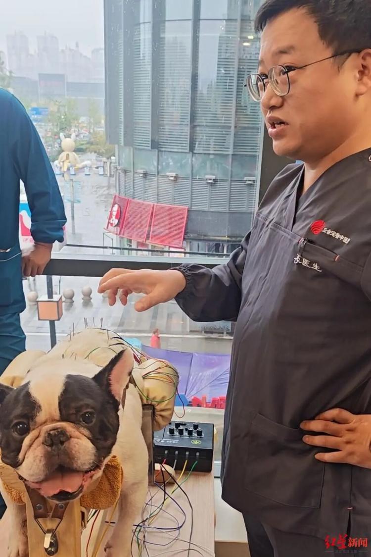 10月30日上昼,成王人“三合宠物中医馆”内,一只法国斗牛犬与一只马尔济斯犬静静趴在针灸架上。它们一因椎间盘凸起导致瘫痪,一因髌骨脱位而跛行——这类神经与清楚系统疾病,正是中兽医擅长应酬的领域。
