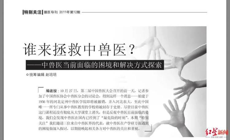 ▲《兽医导刊》2011年刊文,彼时中兽医正遭受东谈主才断层危急