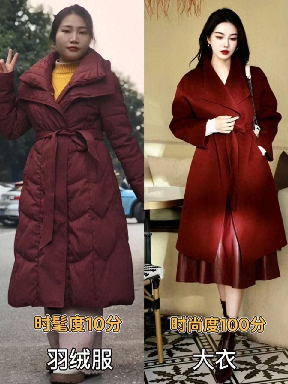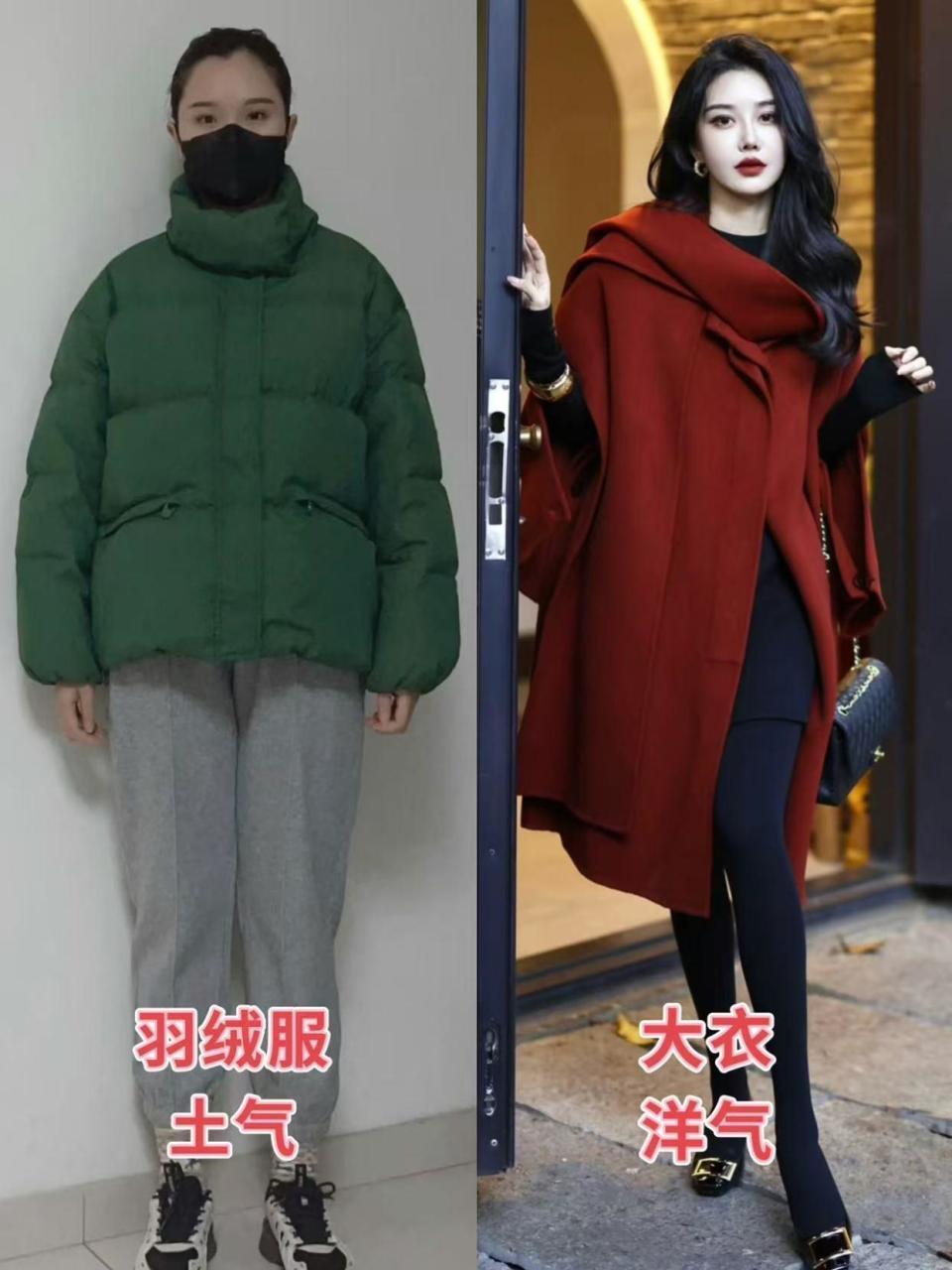 第1章:羽绒服和大衣外衣对比穿法①:绿色羽绒服VS红色大衣