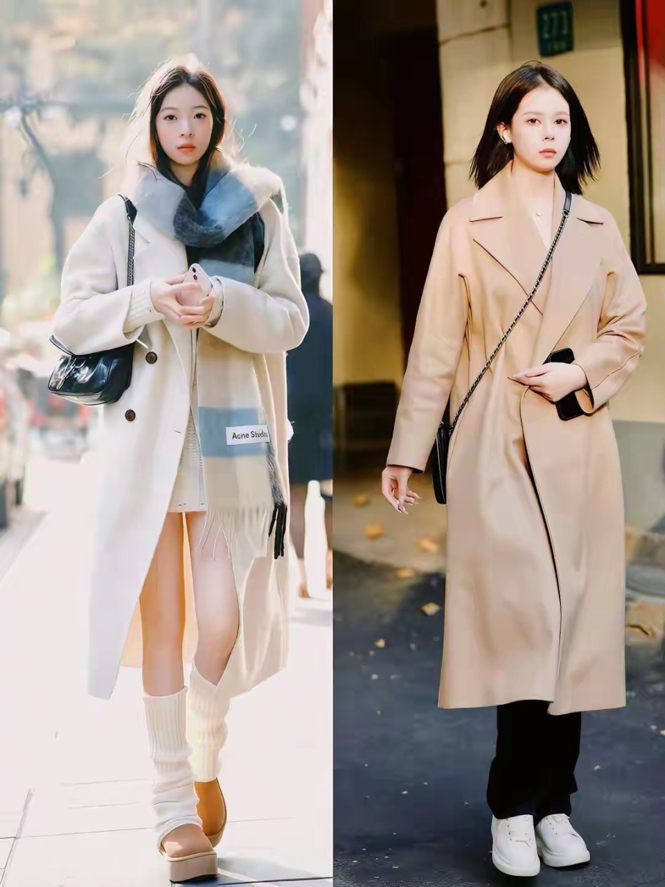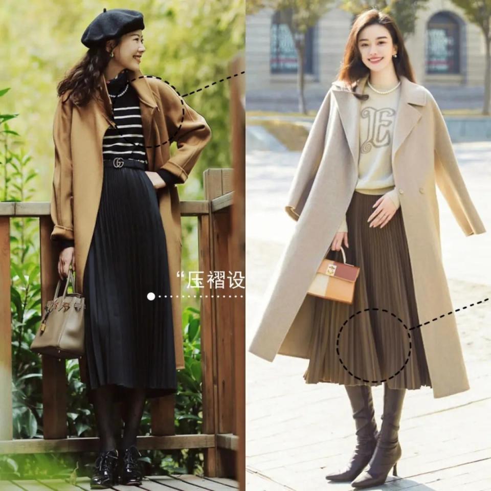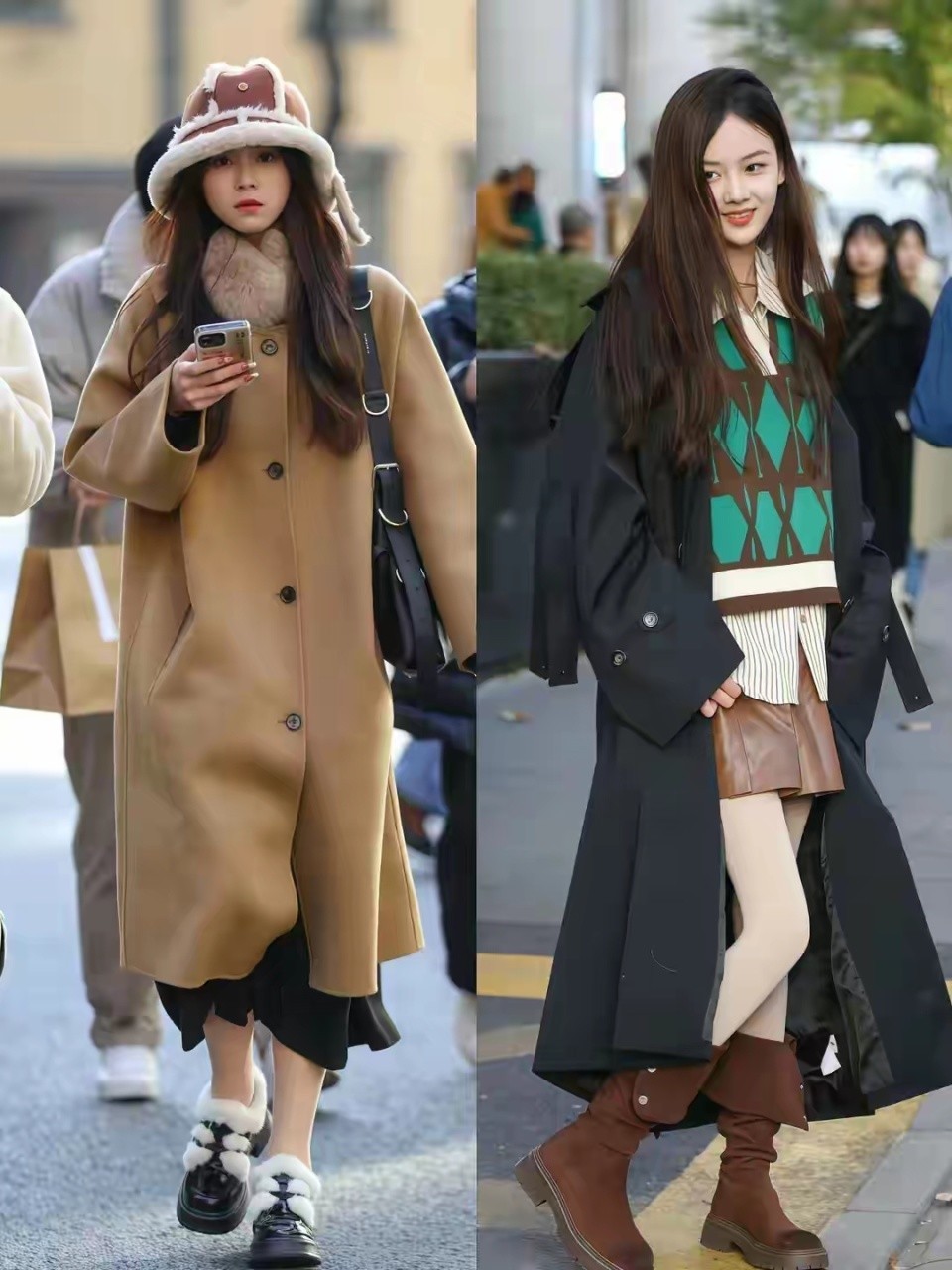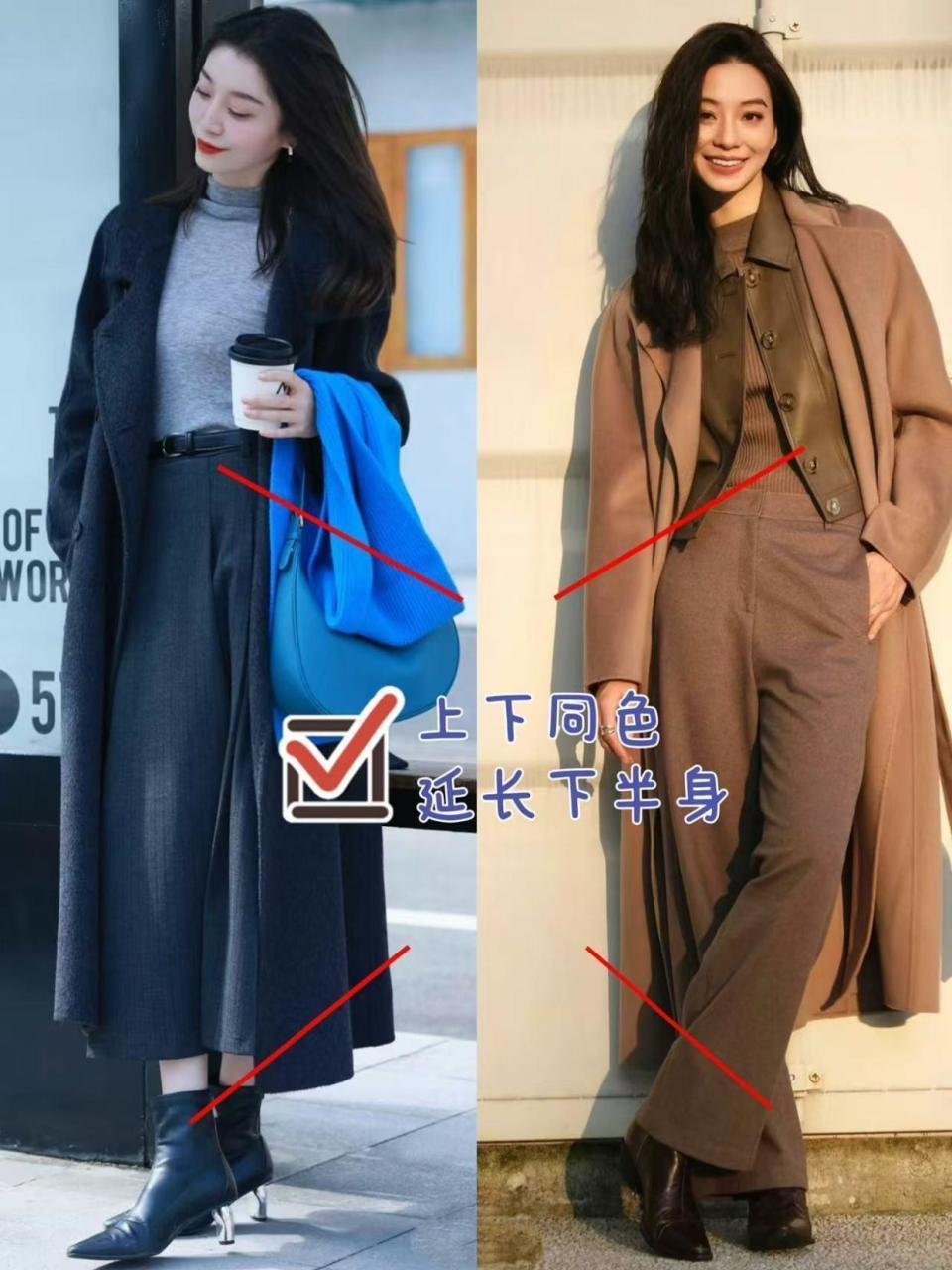 用大衣搭配裙子,裙子的长度取决于你的肉体比例,淌若你领有修长胜利的好意思腿,也莫得胯宽腿粗,这么的肉体劣势,这时分你可以学习上头右边的这位前锋达东说念主,用一条灰色的直筒短裙搭配上驼色大衣外衣和一件竭诚衫,脚上穿了一对玄色的中筒靴,就能造成下半身失散穿搭妙技,约略更好的展现出你的好意思腿,拉风就抢镜。