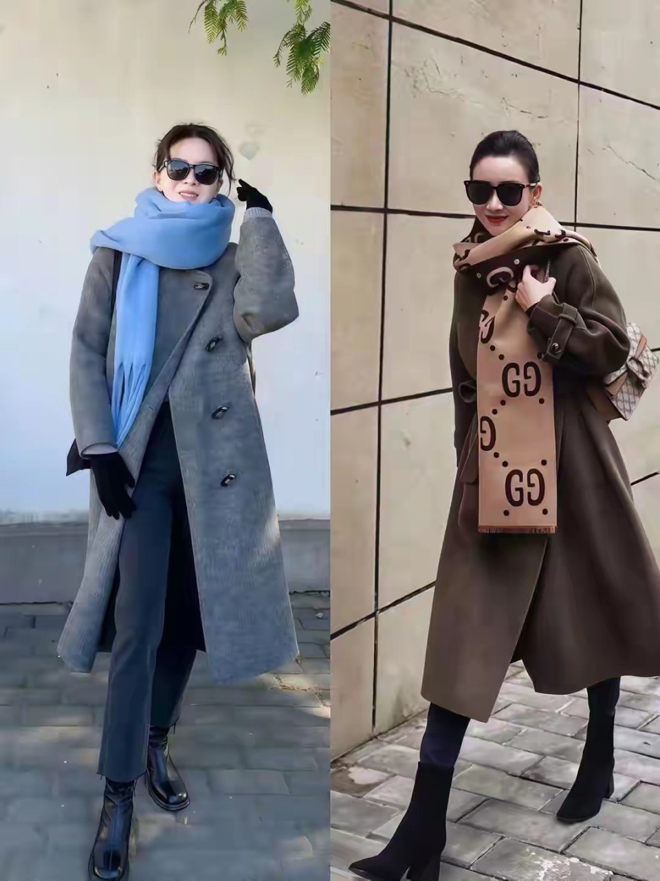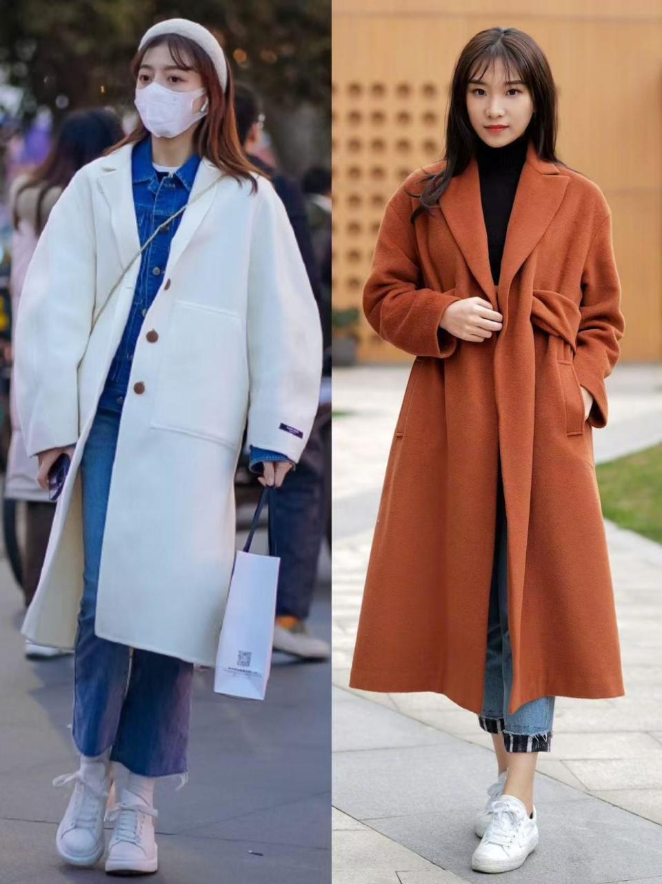 但愿能让我方的肤色显白显嫩,保举你罗致浅驼色大衣,浅近出行穿搭胜利朝上头右边的这位素东说念主一样,用驼色大衣搭配浅蓝色牛仔裤,脚穿玄色清闲清醒鞋,加上印花的领巾,就能使得你从简洋气。
