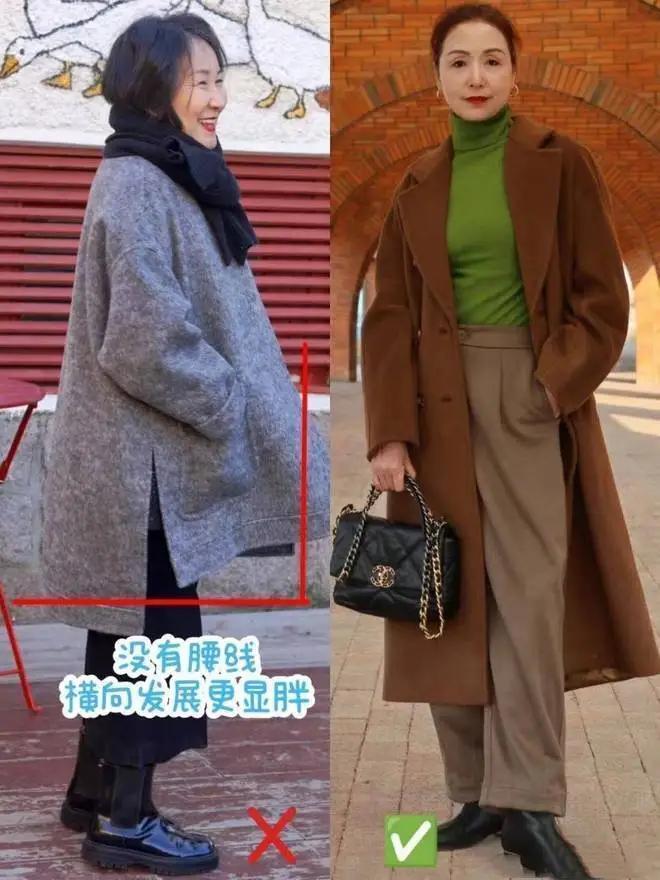 也不是说穿大衣上身摈弃就能让你变得很有气质,相比有拉风的气场,其实当你选错了大衣外衣,一样也会显胖,举例上头这一件灰色的大衣外衣,莫得腰线的盘算推算,穿在身上压身高显矮还显土。